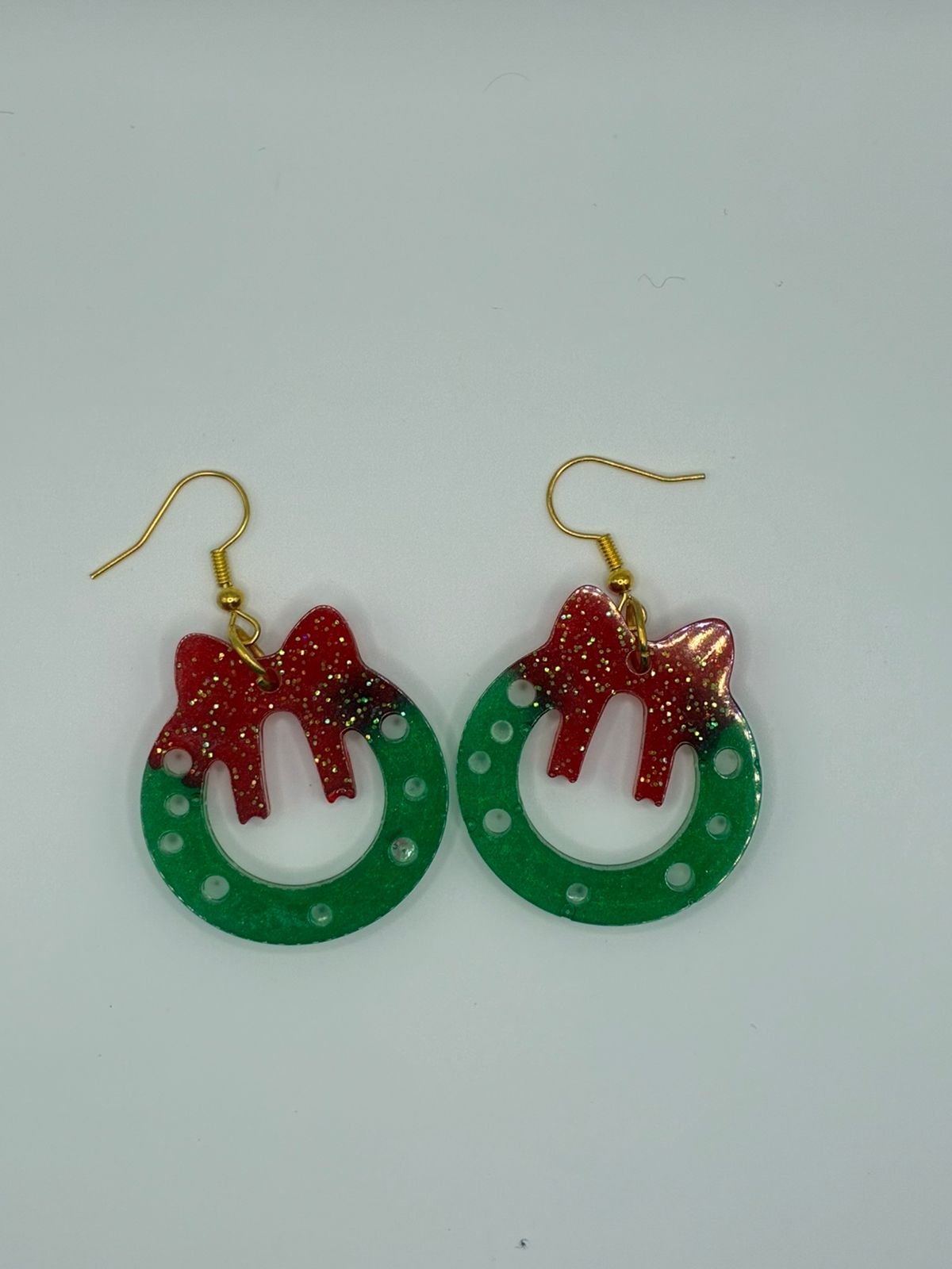 Realza tu estilo con los exclusivos aretes de resina con forma de aro navideño. Estos accesorios únicos combinan la elegancia y el espíritu festivo, siendo el complemento ideal para tus celebraciones y eventos durante la temporada de fin de año. Perfectos para quienes buscan destacar con un toque especial, estos aretes ofrecen una manera sencilla pero sofisticada de incorporar la temática navideña a cualquier atuendo.